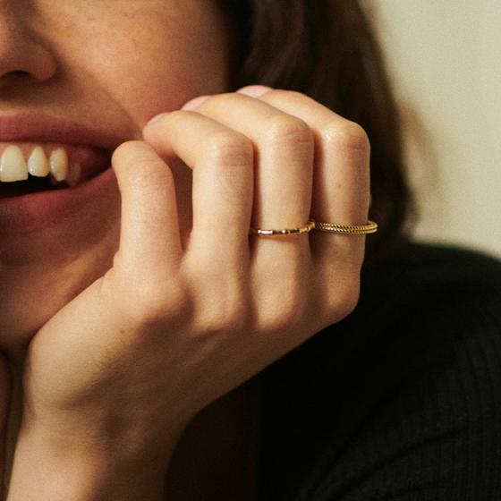 This textured stacking ring is an eye-catching addition to any stack. Hand-crafted with care in 18ct gold plate this piece adds a touch of effortless luxury to your everyday. Pile on with other bands and signet styles or go for a paired back look. You’ll wonder how you ever lived without this one.