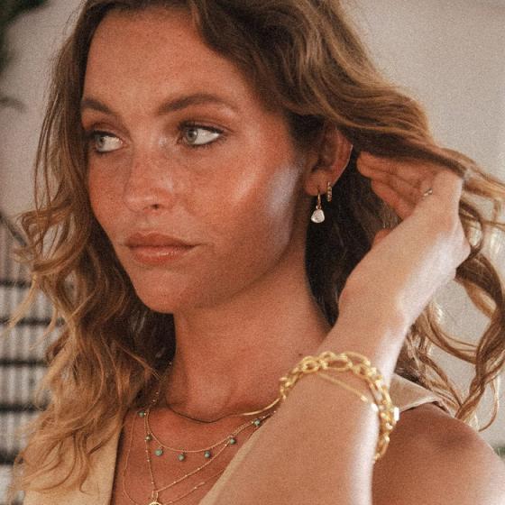 We’ve matched our iconic Mother of Pearl pieces together to create a timeless set you’ll love. Featuring an iridescent slice of pearl encased in 18ct gold plate, you really can’t go wrong with this one. Explore more layering sets here.
