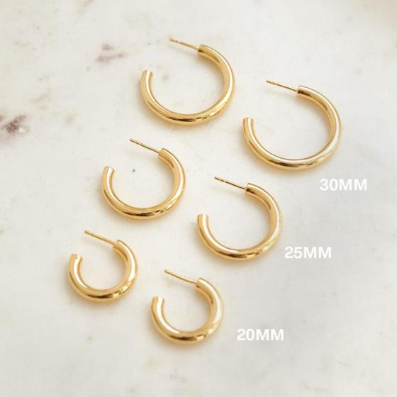Let this bold stack do all the talking, featuring three of our new-in bold hoops in 20, 25 and 30mm. Minimal in design, maximum impact. In our signature 18ct gold plating, they’re perfect to mix and match or wear as a set. Explore more layering sets here.