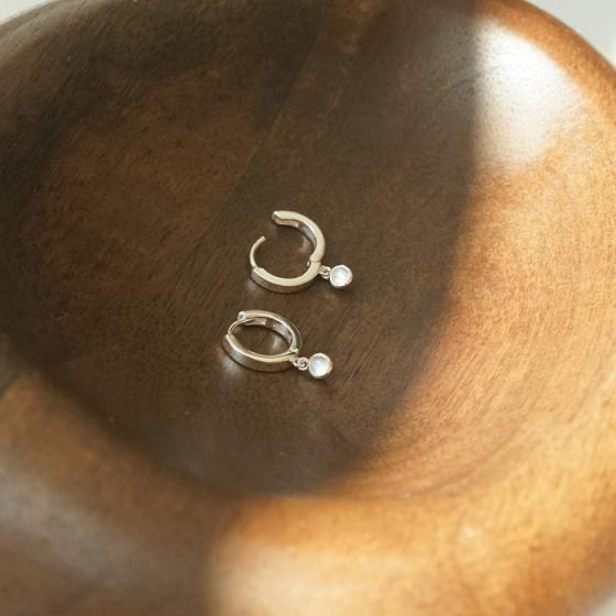 HARMONY | INTUITION | CREATIVITY Strengthen your confidence and find balance with this serene semi-precious stone. Set on a fine hoop this simple but effective huggie brings nothing but good energy and effortless style to your stack.