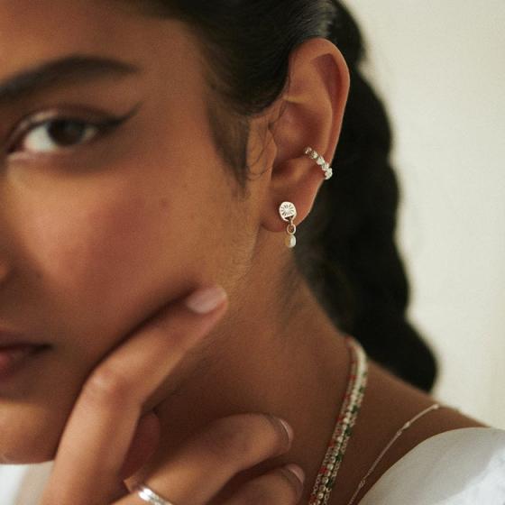 Small yet perfectly formed, our Shell Cuff Earring is finished in recycled sterling silver and will instantly elevate your ear game. Featuring a row of tiny clam shells, this ear cuff requires no piercing and slips on and off easily.