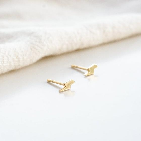 The coup de foudre just waiting to happen. These lightning bolt studs are made with 18ct gold plating, and will make the perfect striking addition to any stack.